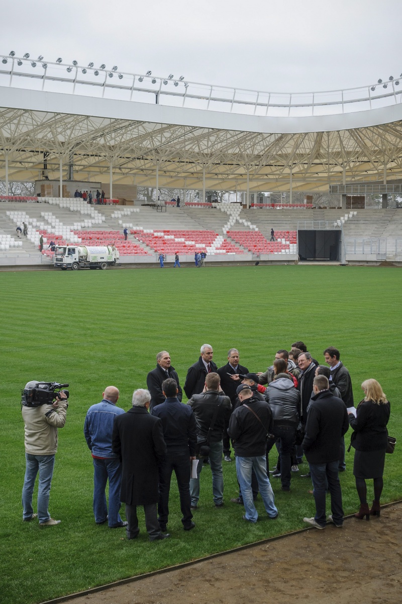 Lajos Kósa, mayor of Debrecen and Márton Vági, president of the Hungarian Football Association announced that a friendly match would be played by Denmark and Hungary at the new stadium on 22 May 2014.